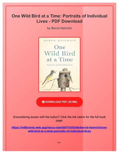 Free Download One Wild Bird Time Individual Epub By Click Button. One Wild Bird Time Individual it’s easy to recommend a new book category such as Novel, journal, comic, magazin, ect. You see it and you just know that the designer is also an author and understands the challenges involved with having a good book. You can easy klick for detailing book and you can read it online, even you can download it